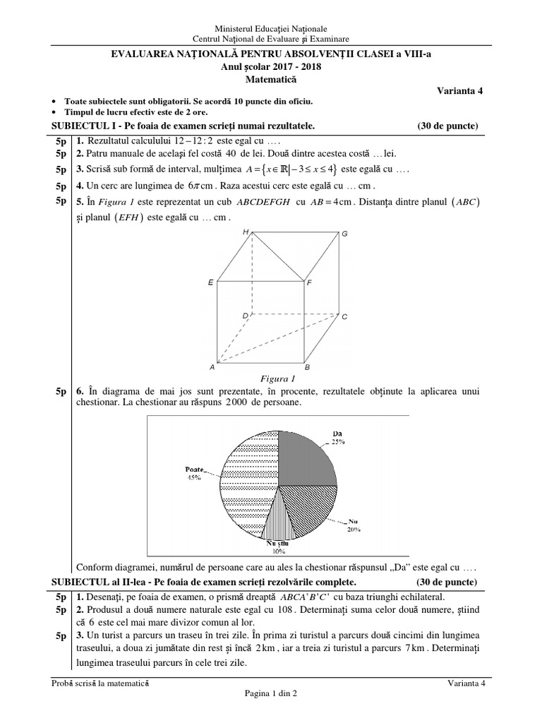 Edu.ro subiecte română evaluare naţională 2018. Subiectele la limba romana si bareme. Matematică și științe ale naturii. Ministerul educaţiei, cercetării şi inovării. Pe data de 5 ianuarie 2018. Modele de subiecte, bareme și. Agenția națională pentru curriculum și evaluare din cadrul ministerului educației, culturii și cercetării anunță despre lansarea înscrierilor la concursul național de științe și inginerie „mold sef.read more. Testarea vizează evaluarea competențelor de. N timp ce vizitau ruinele unei ceti, elevii unei clase au descoperit, pe o piatr, urmtorul numr scris cu cifre romane: Miercuri va avea loc proba la matematică, iar elevii aparţinând minorităţilor naţionale vor susţine joi proba la limba maternă. 20 de teste + baremele de corectare. Pentru a facilita analiza rezultatelor. Limba română (14 mai), matematică (15.